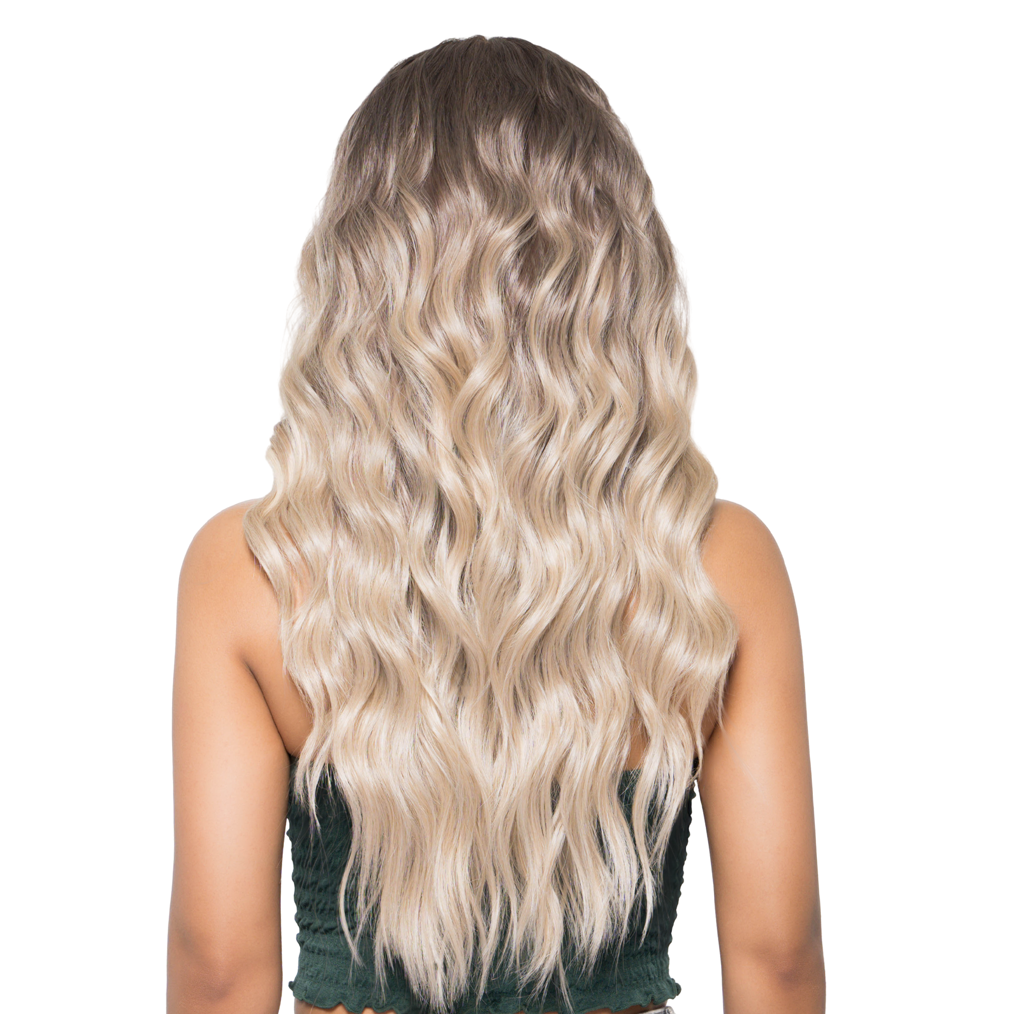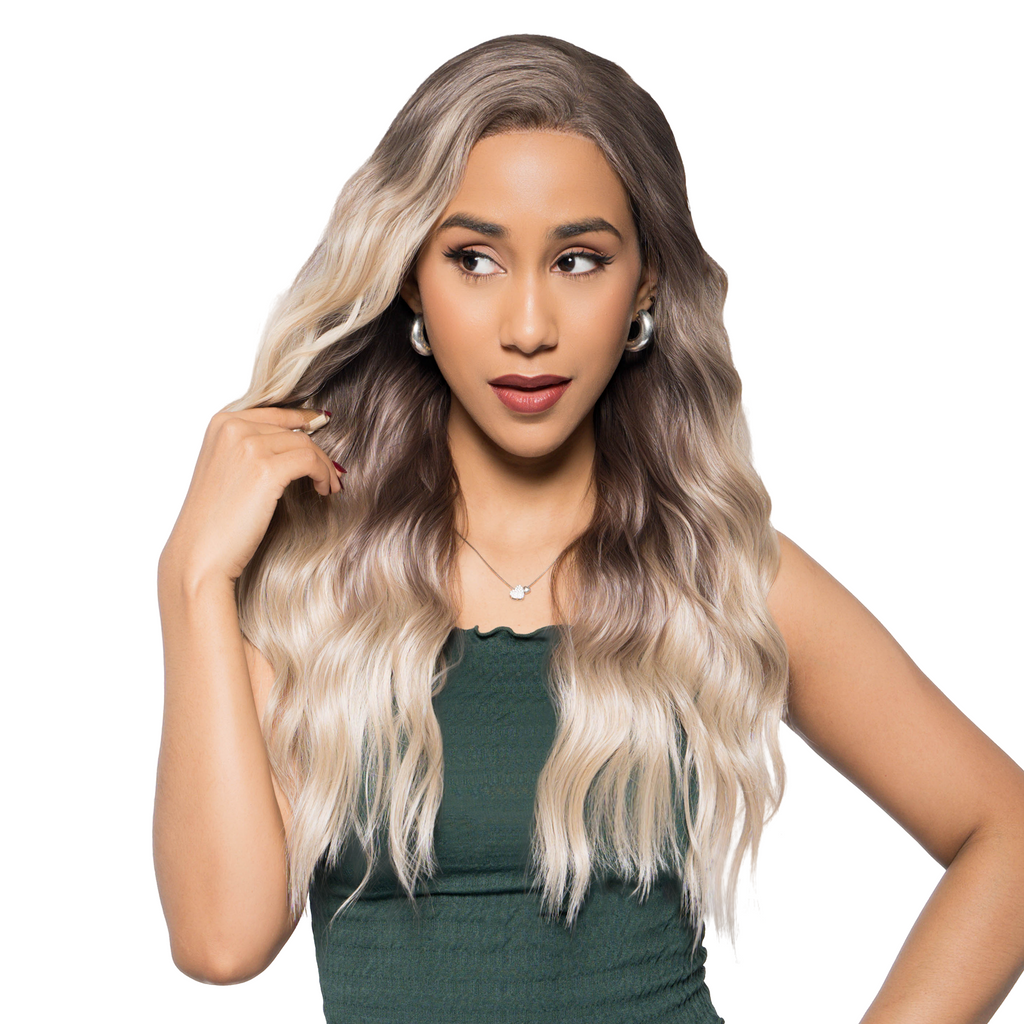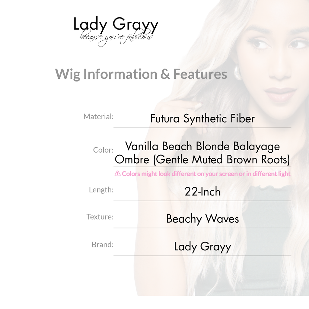 22-Inch Vanilla Beach Blonde Balayage Ombre (Gentle Muted Brown Roots) Beachy Waves Futura Synthetic Wig