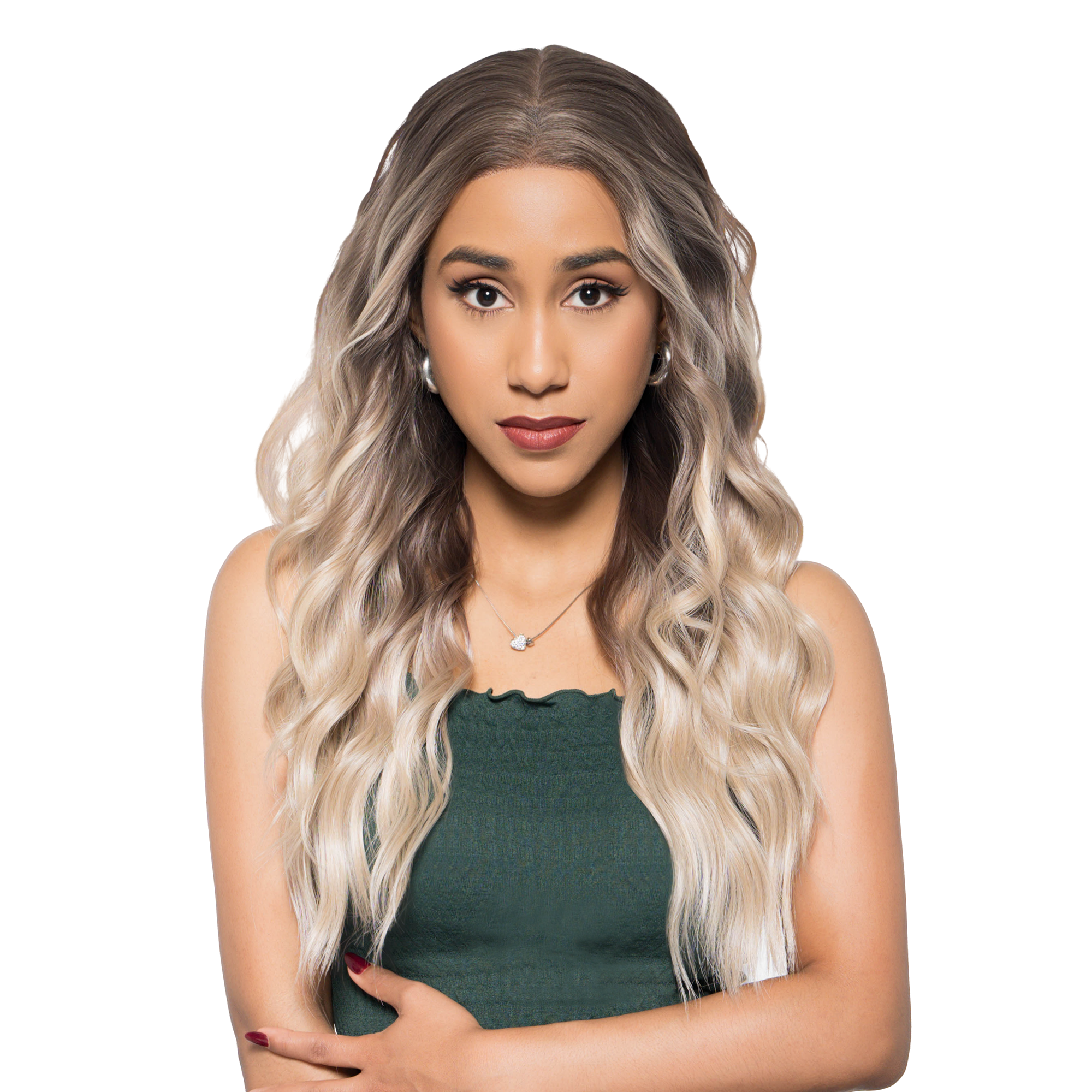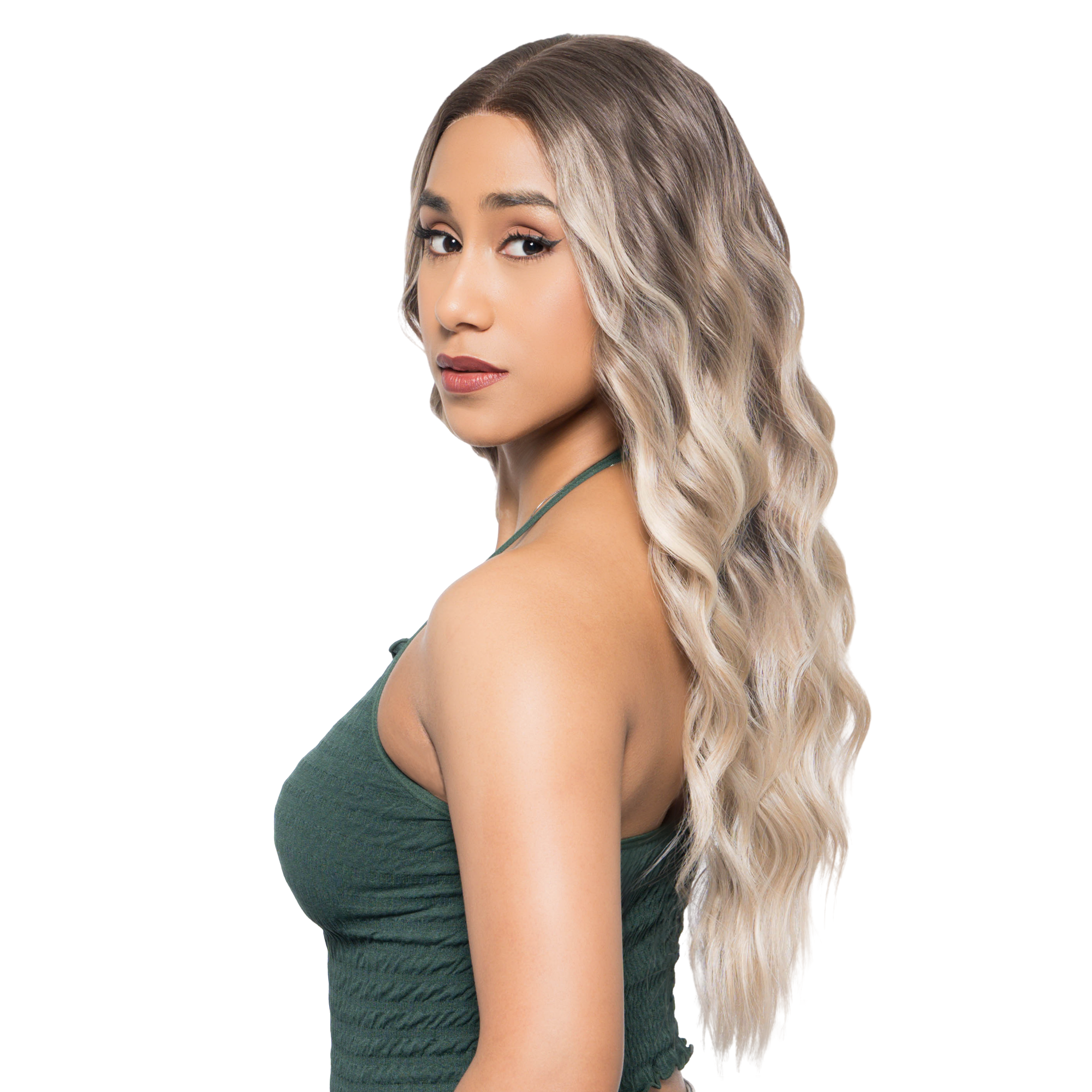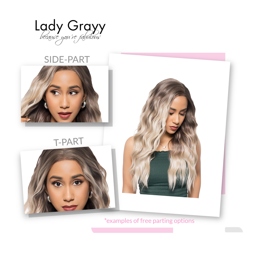 22-Inch Vanilla Beach Blonde Balayage Ombre (Gentle Muted Brown Roots) Beachy Waves Futura Synthetic Wig