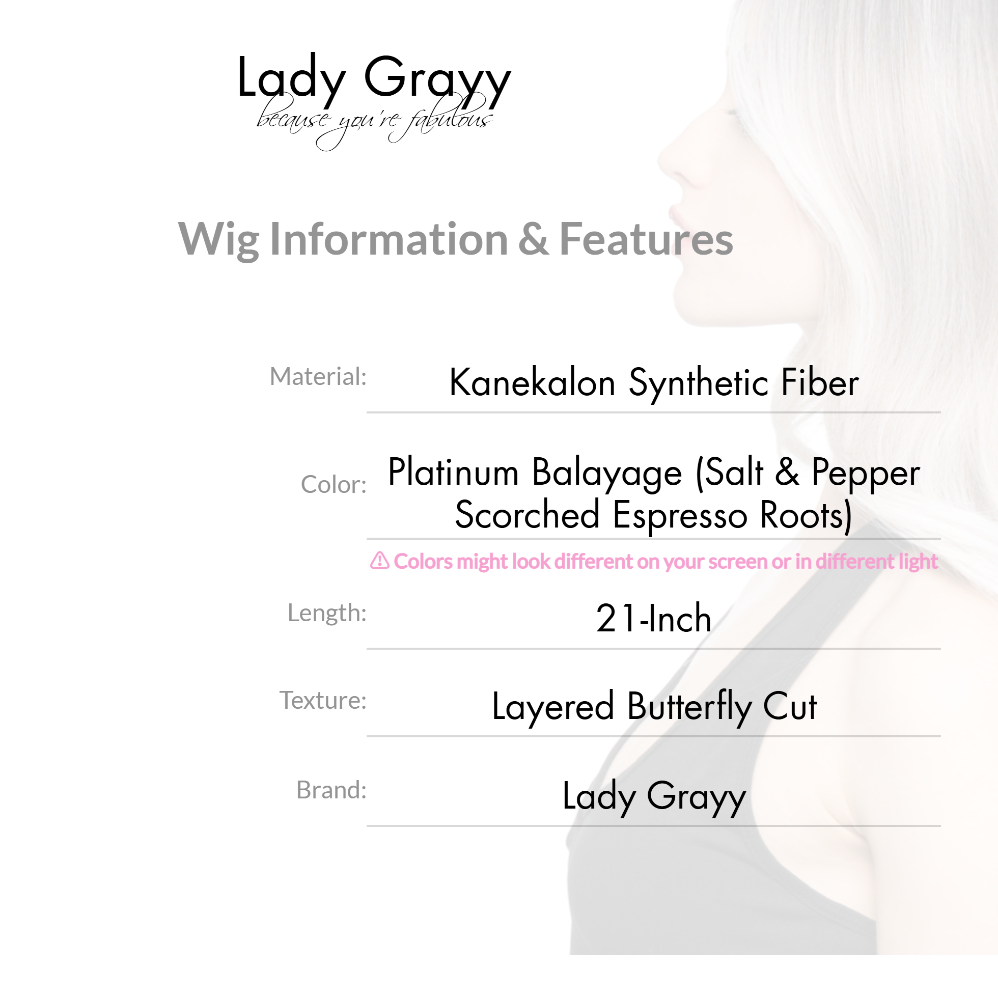 What's Included: 1 Lady Grayy Wig + 1 Wig Cap