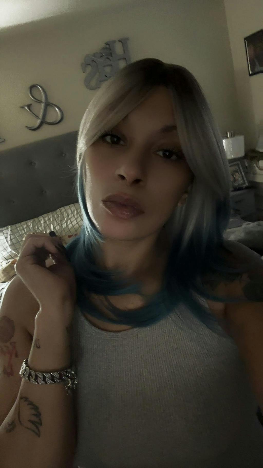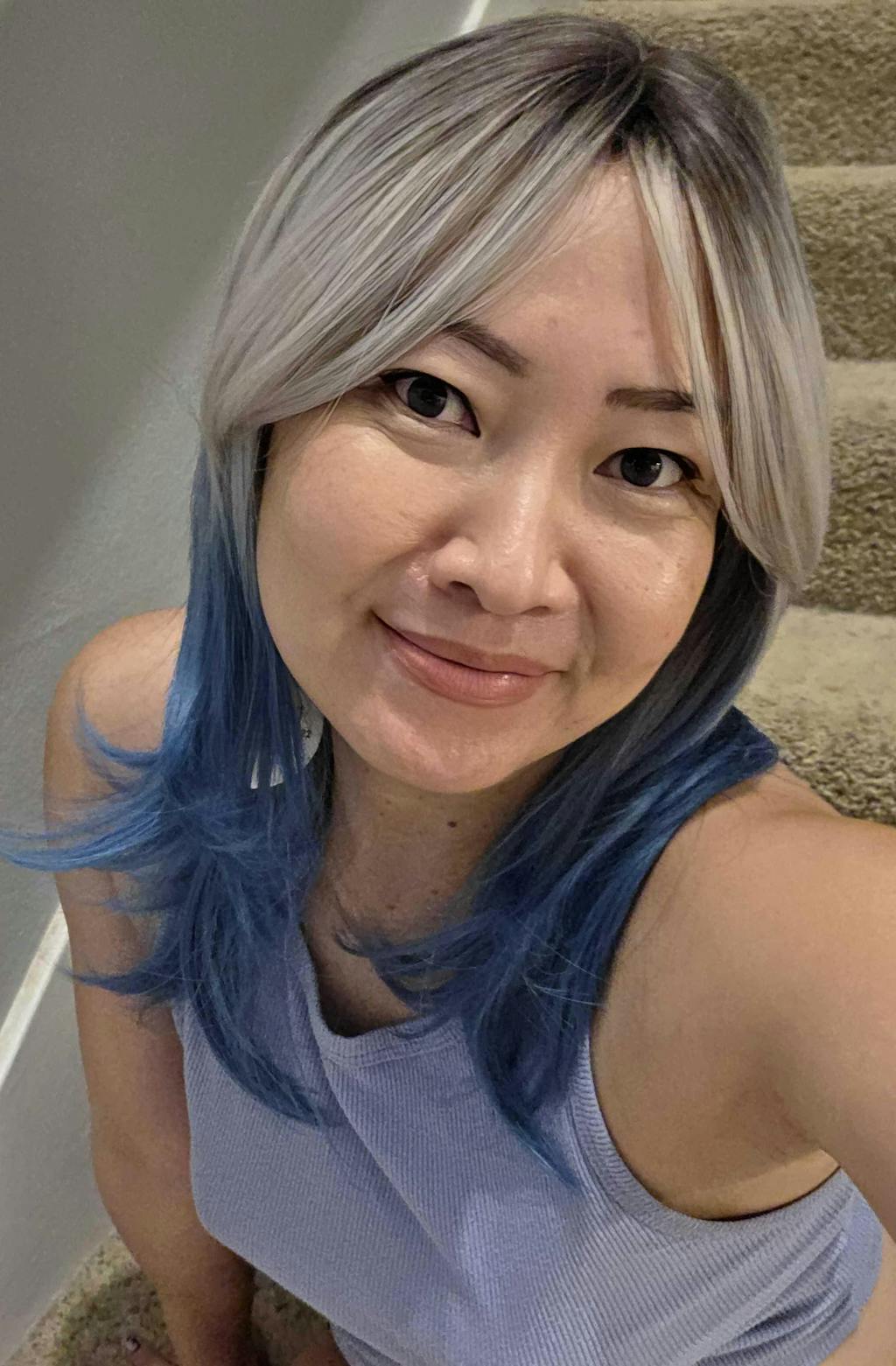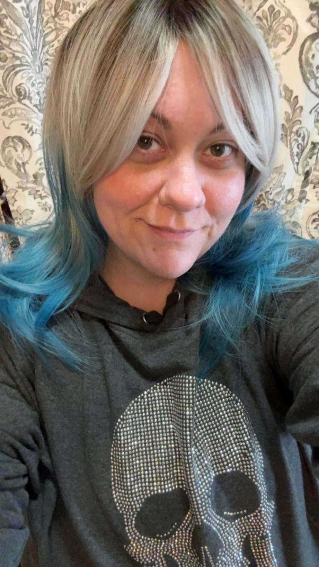 - Color: Platinum Blonde Blue Ombre (Cerulean Blue Ends, Scorched Black Roots)