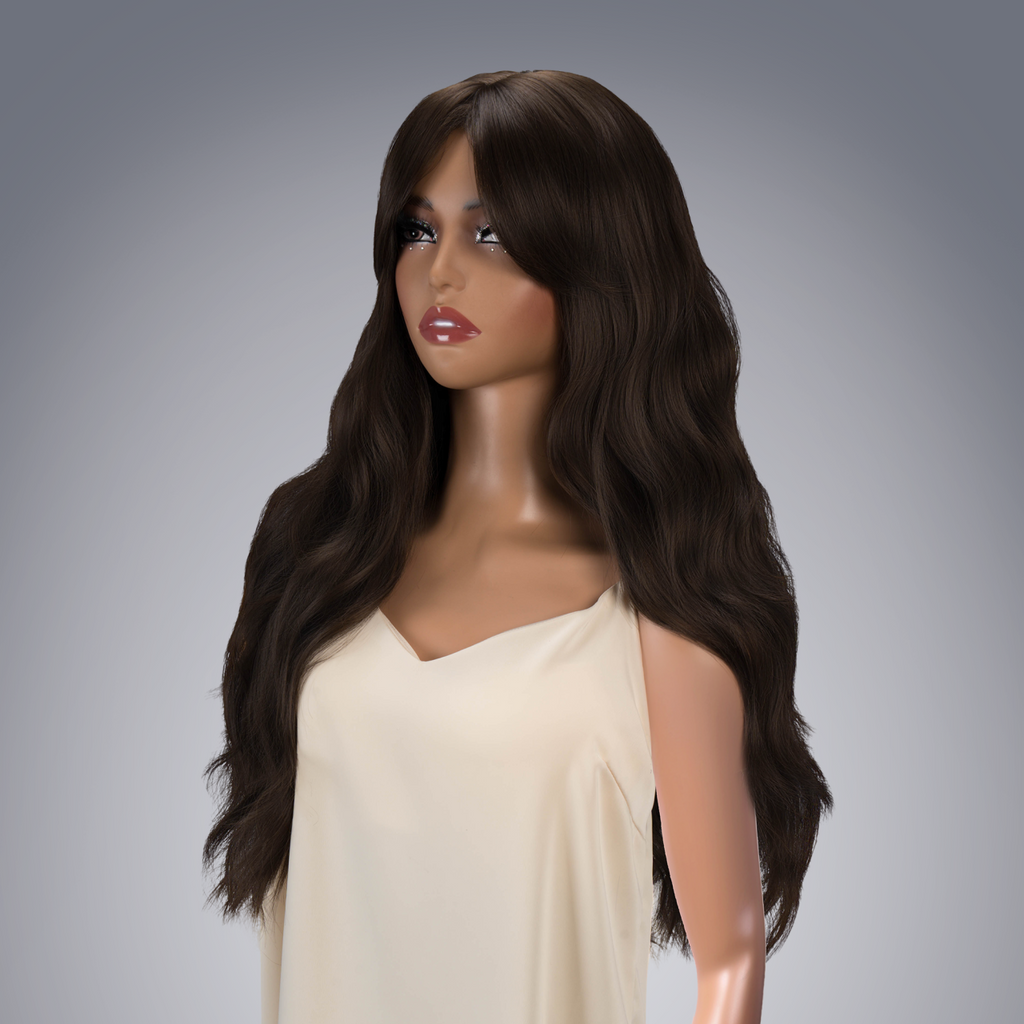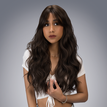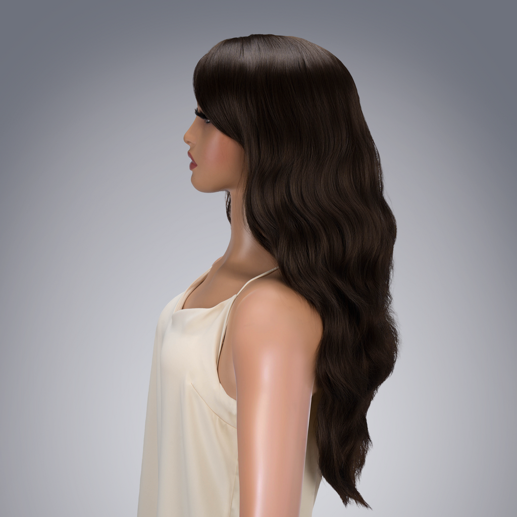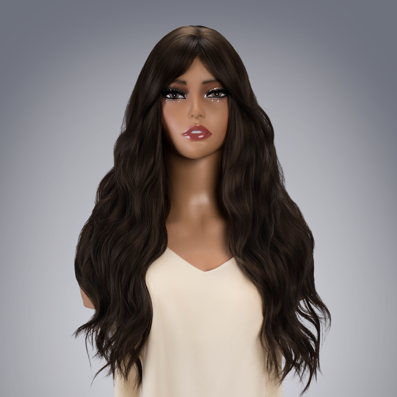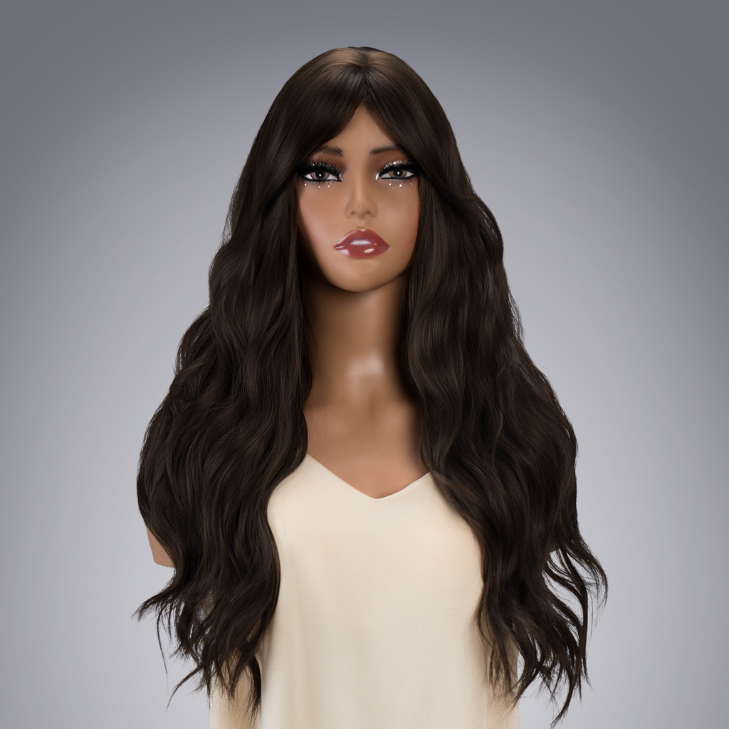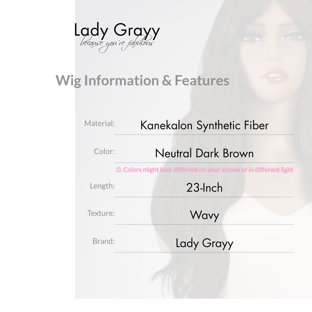 23-Inch Neutral Dark Brown Wavy Synthetic Wig