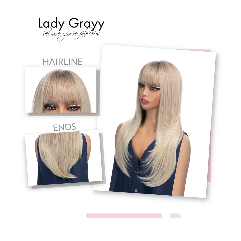 Choose this Lady Grayy pre-styled wig for daily wear or special occasions - crafted from high-quality synthetic fibers. Offers a realistic look.