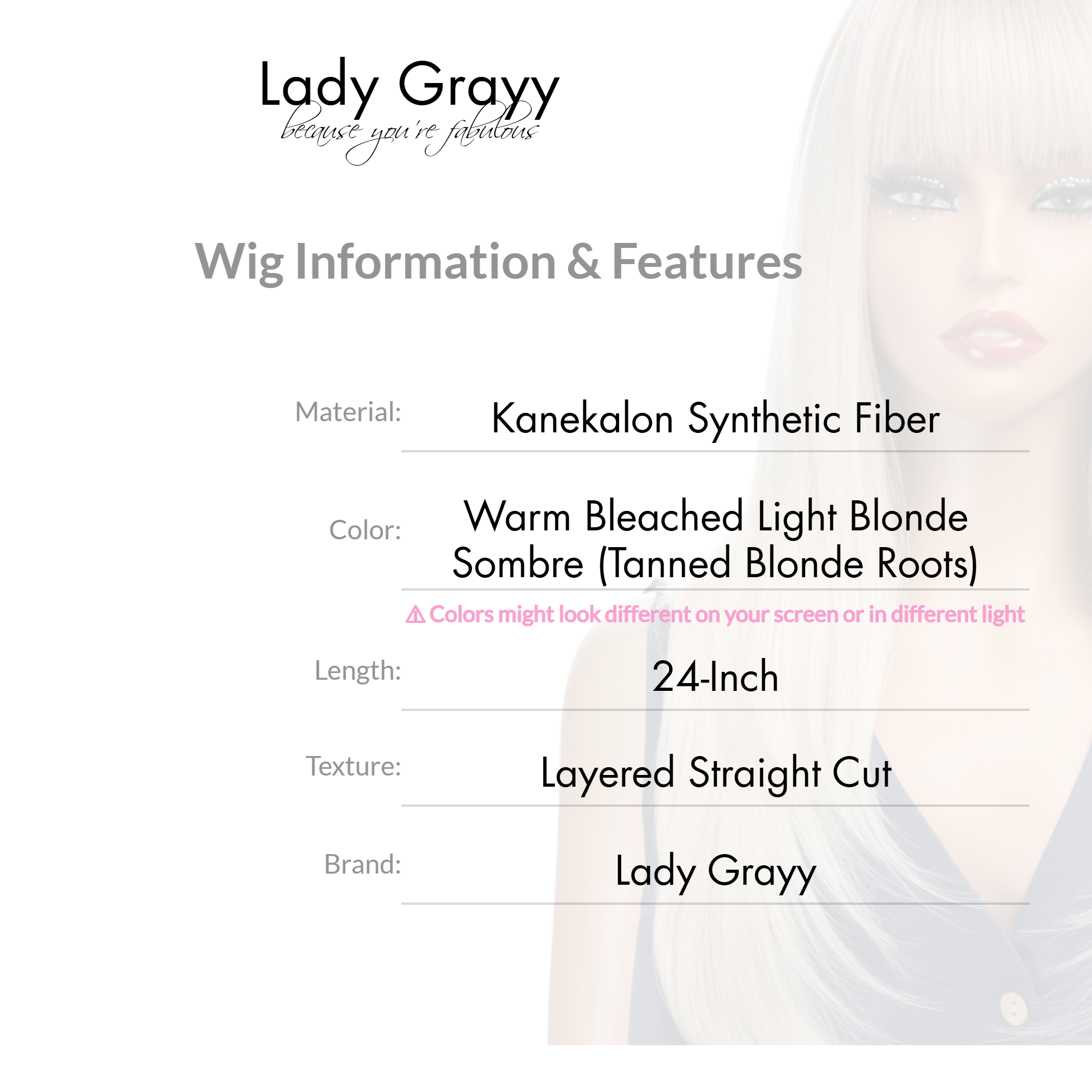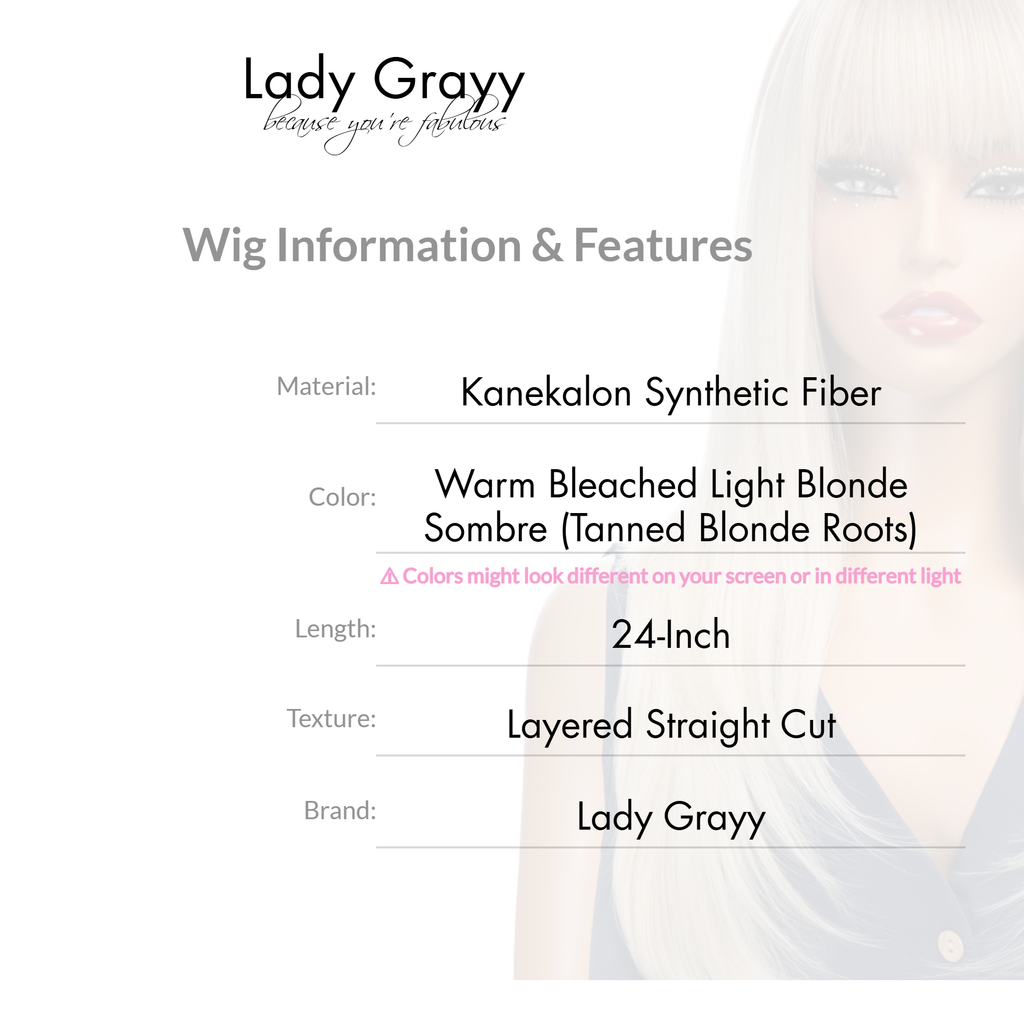 24-Inch Warm Bleached Light Blonde Sombre (Tanned Blonde Roots) Layered Straight Cut Synthetic Wig