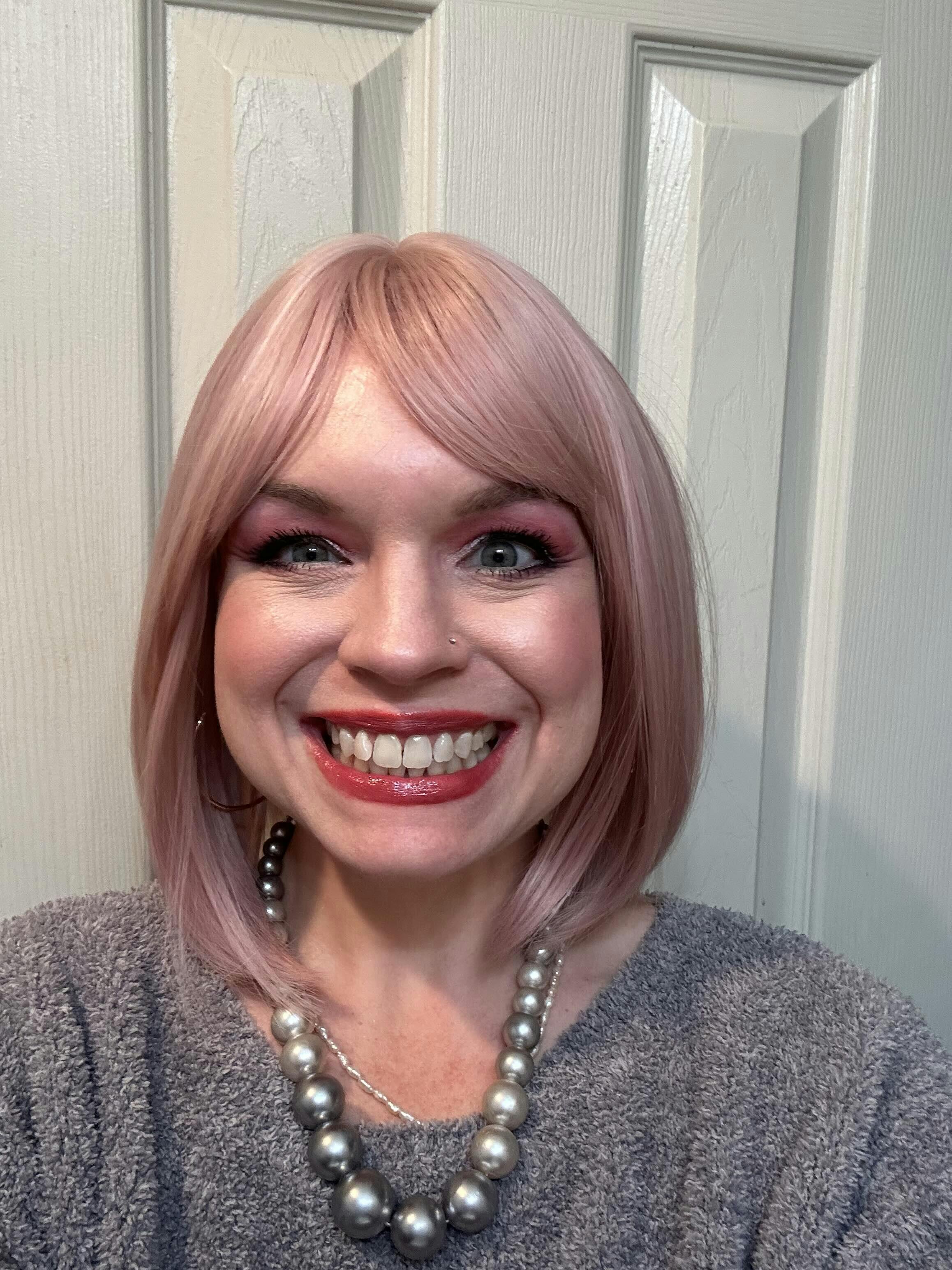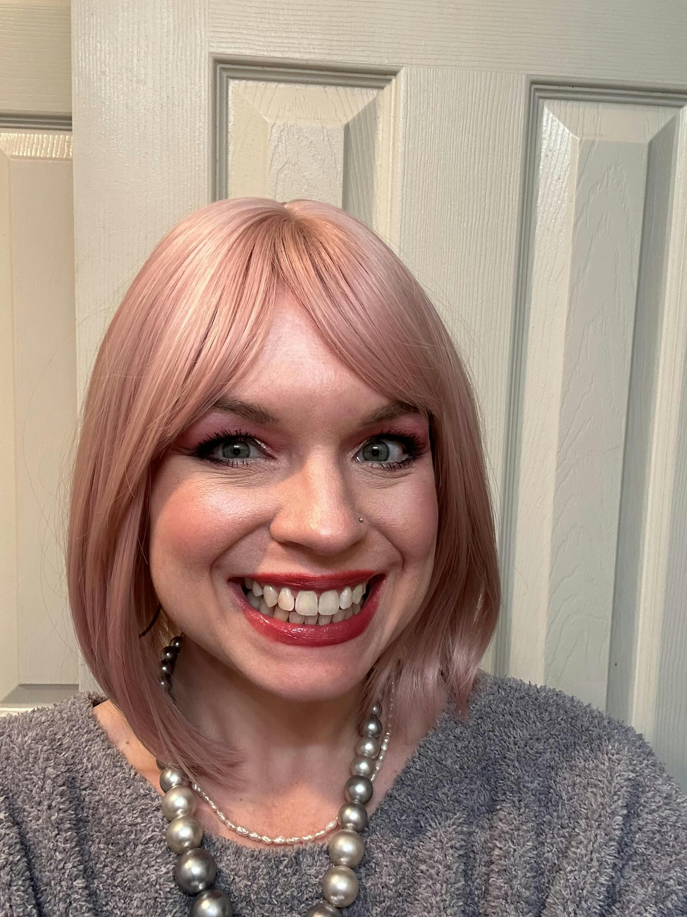 9-Inch Soft Pink (Warm Platinum Blonde Blend) Straight Bob Synthetic Wig