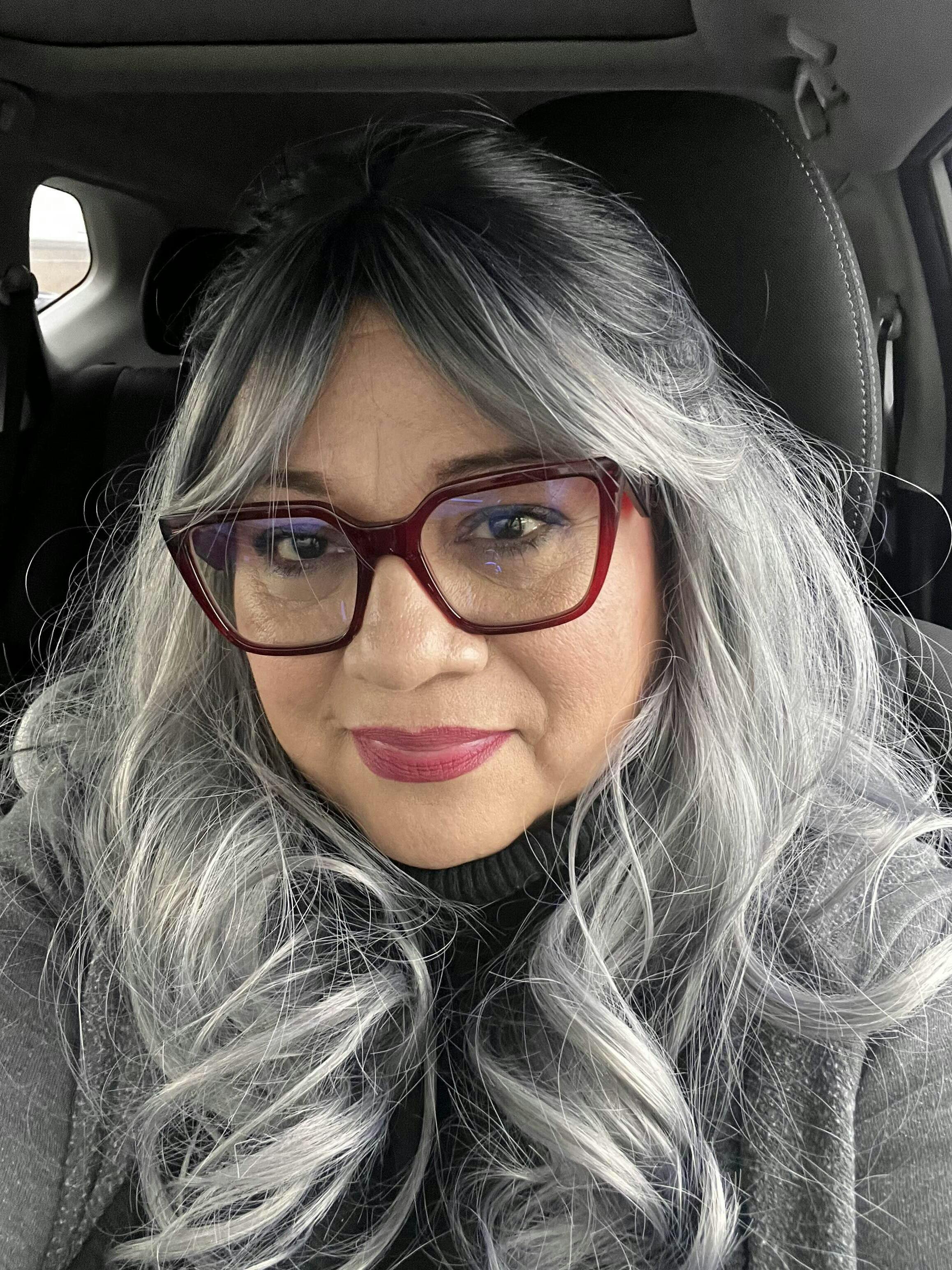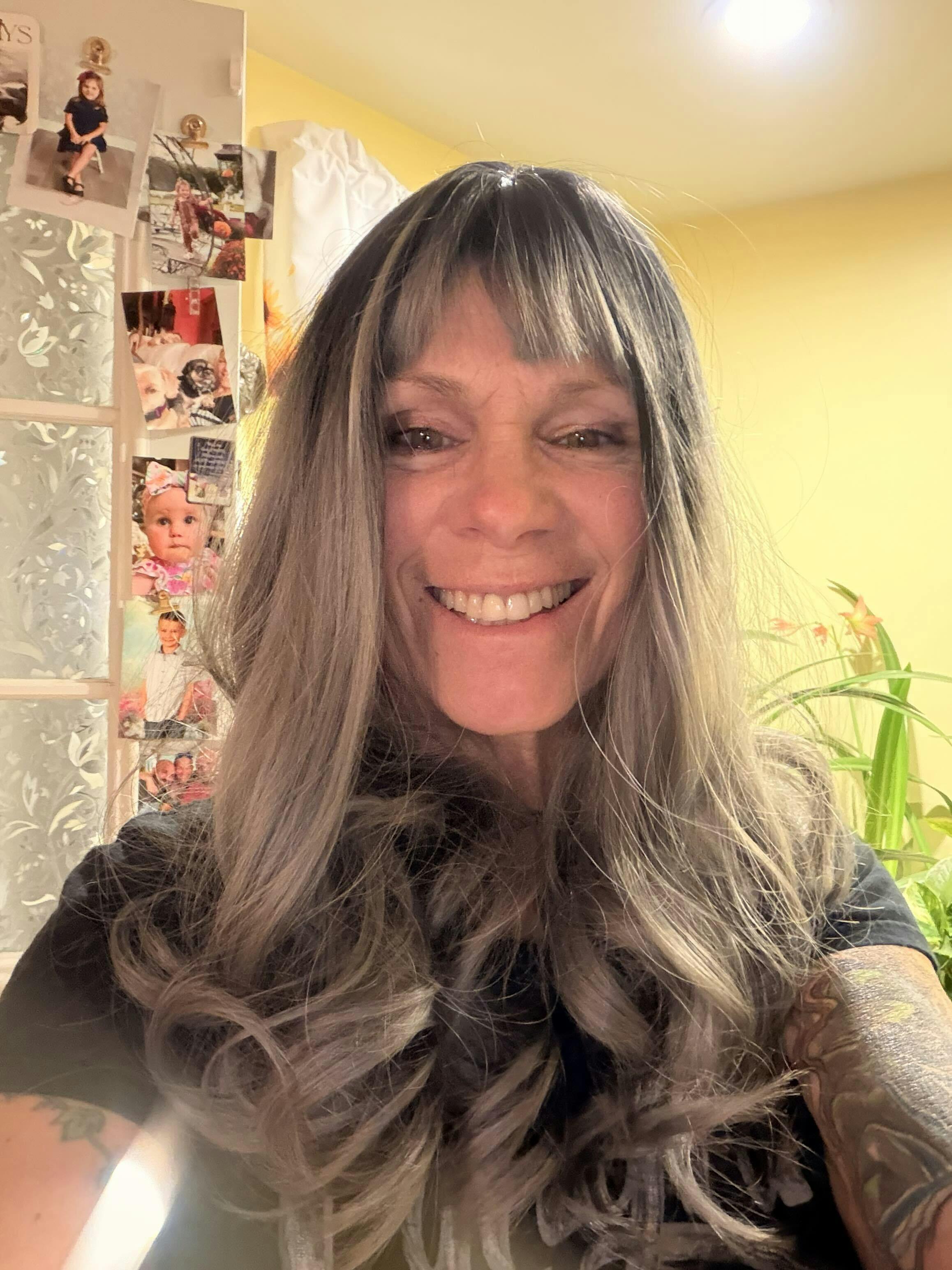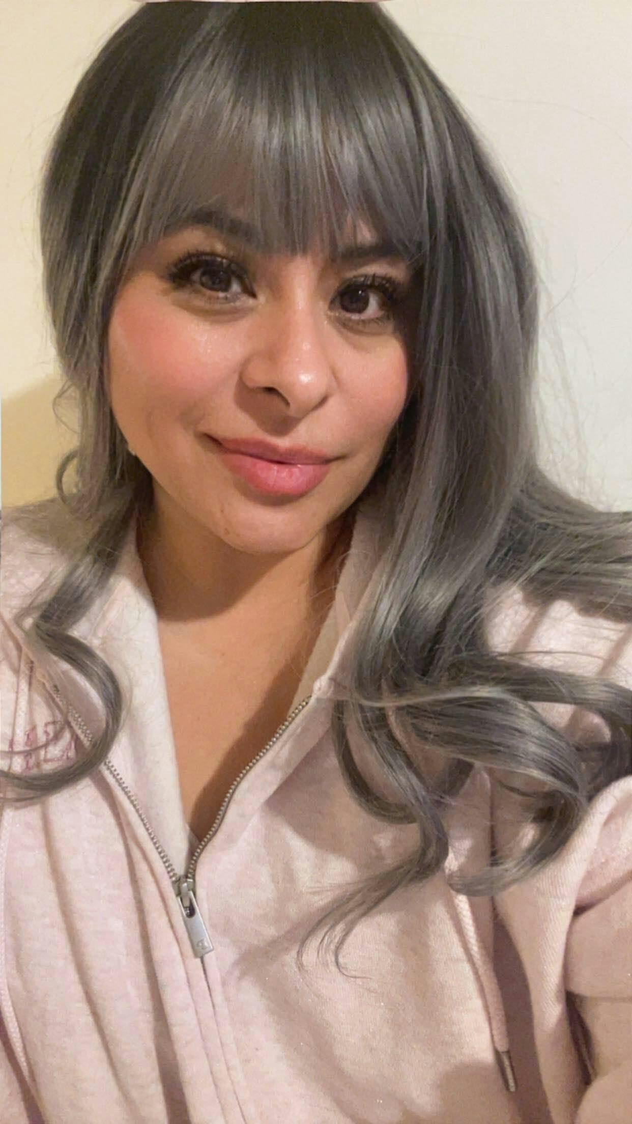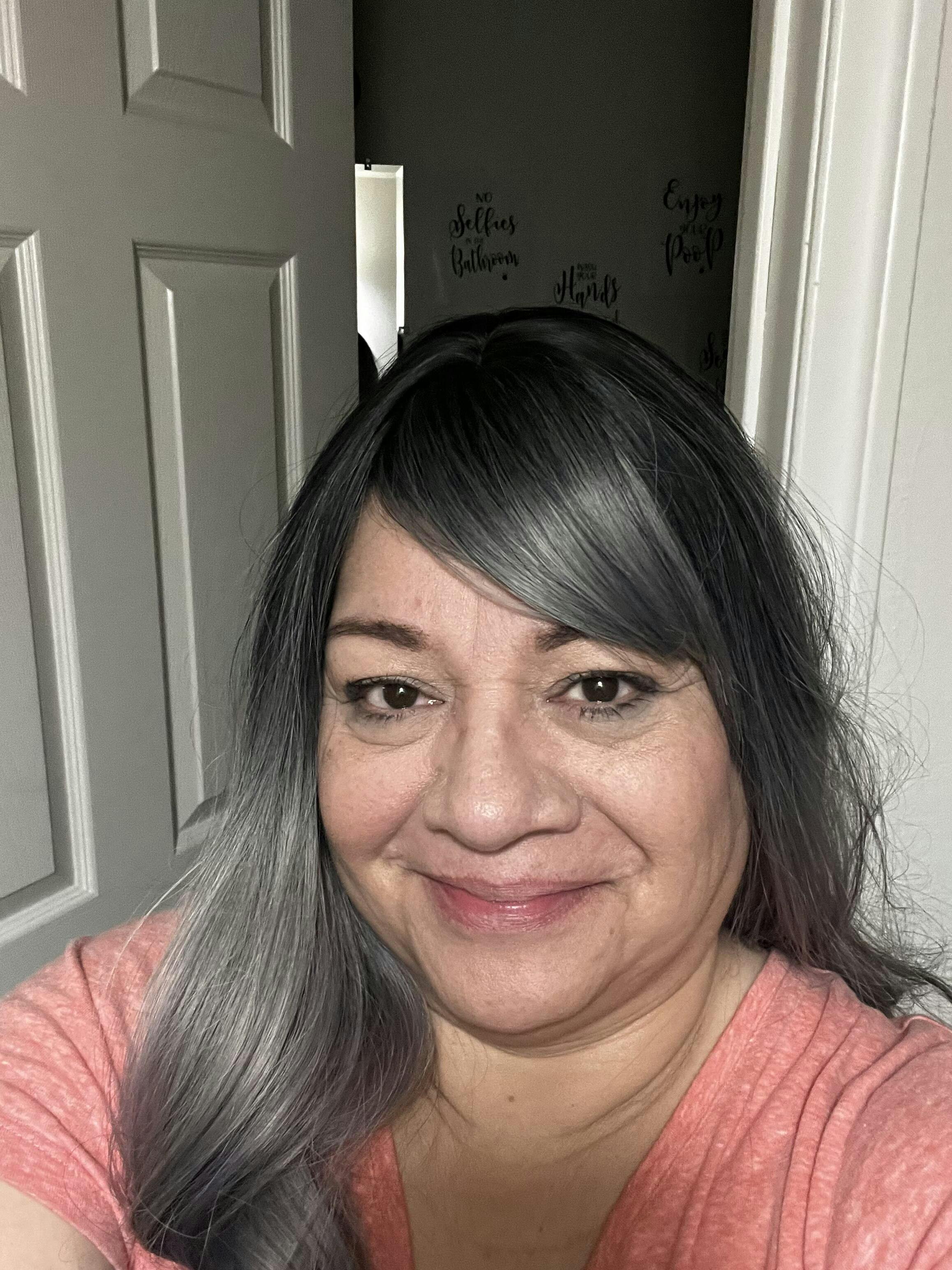 - Color: Subtle Blue-tinted Smokey Silver Ombré (Black Roots)